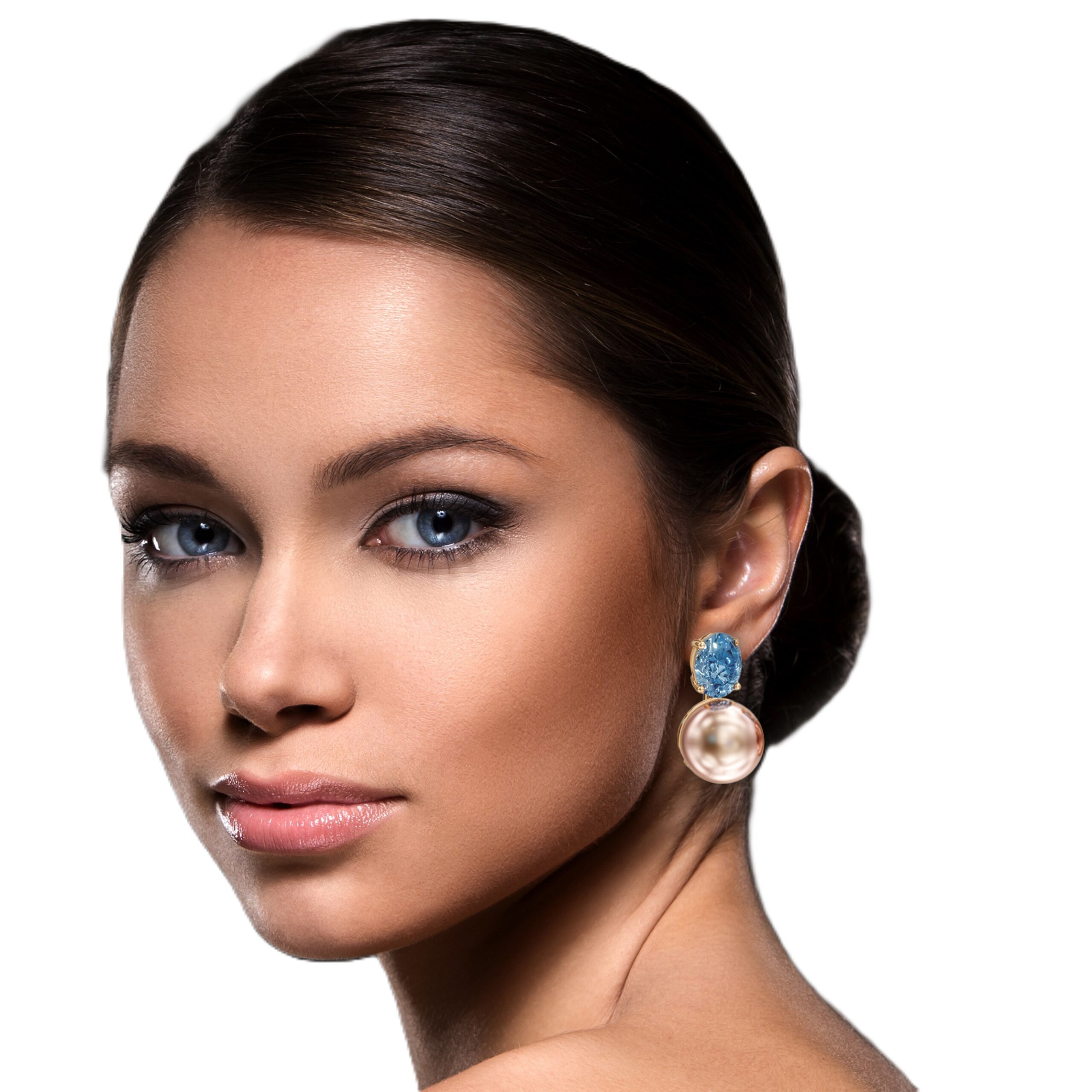 Oval blue stone with pearl droplet- SSD111